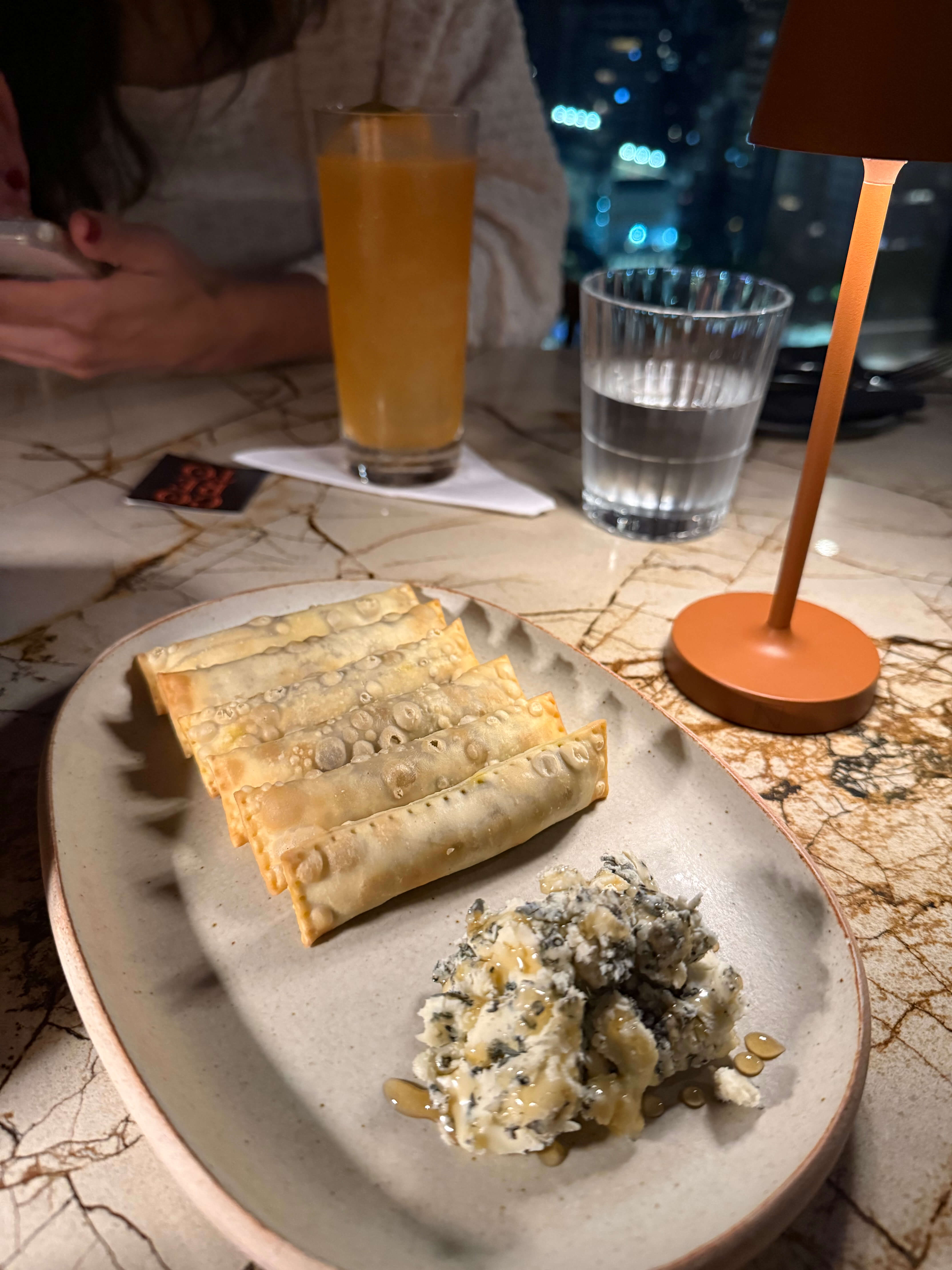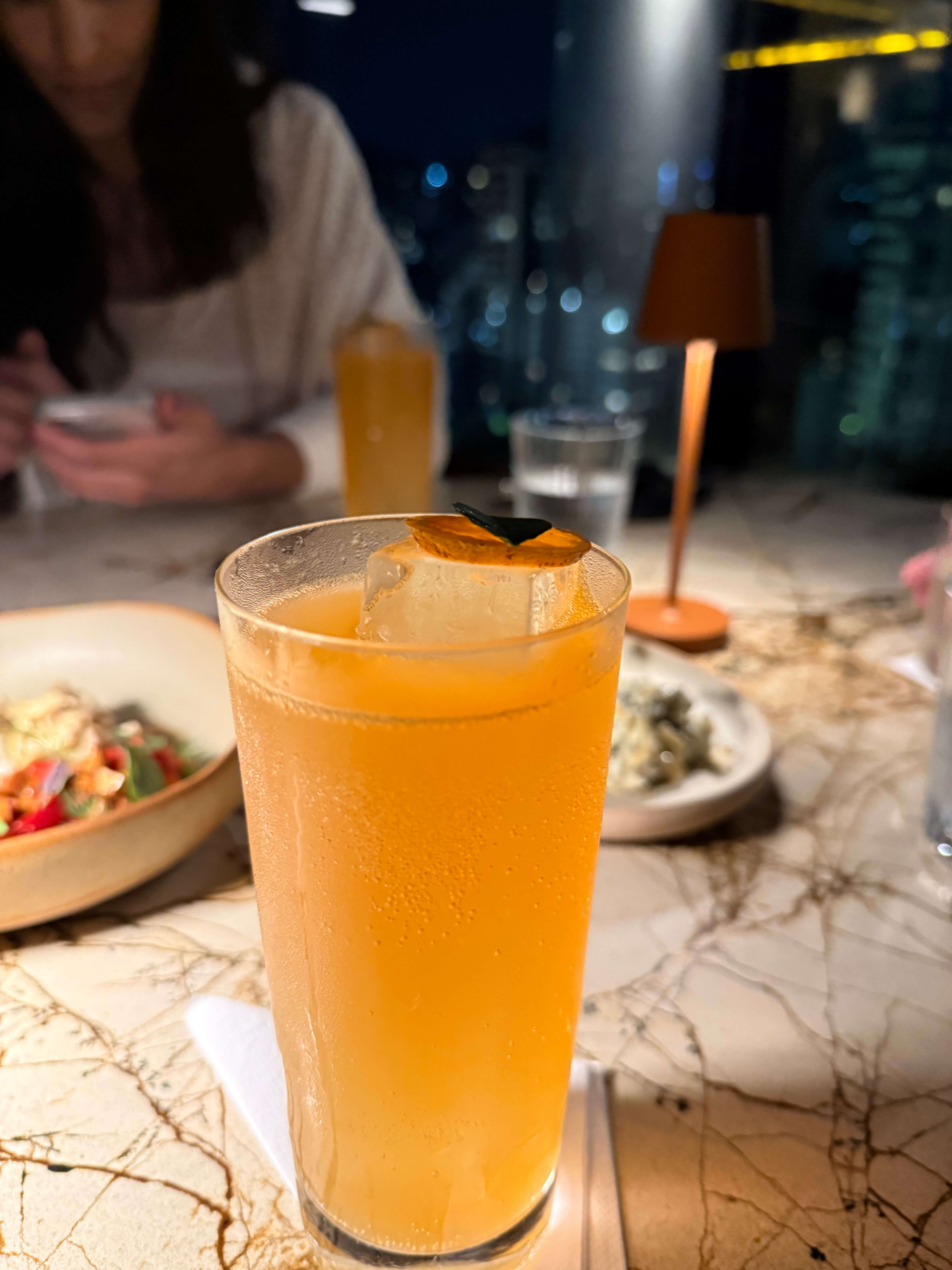 O drinque ainda leva Amarogutta Deep Red, Duck Gin e zest de laranja. Eu que não sou fã de Campari achei essa versão menos amarga e com mais personalidade, mas, ainda assim, um coquetel forte. Eu fui de Larancello Spritz, uma versão do Aperol Spritz feito com licor de laranja artesanal, espumante e água gasosa. Aperol é uma das minhas bebidas favoritas, e essa versão não decepcionou.