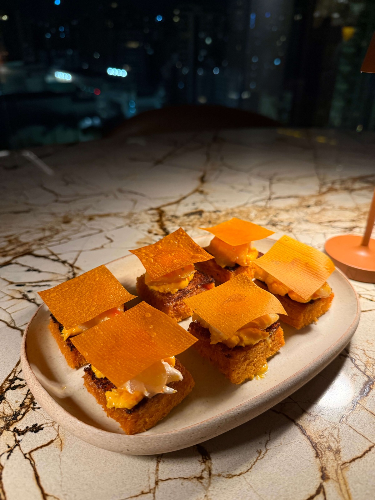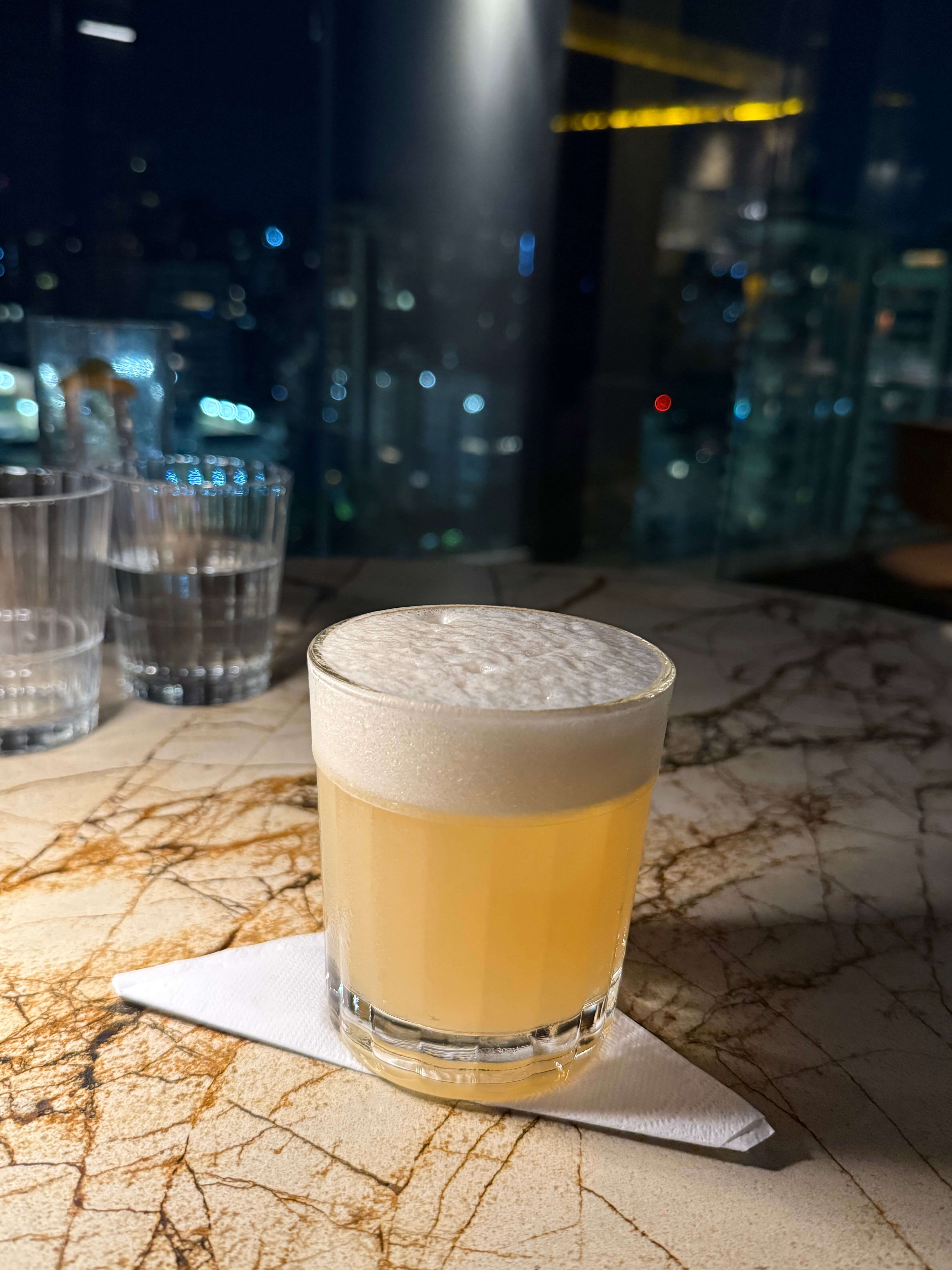 No momento das entradas e primeiras degustações, meu acompanhante pediu o Bilisco, que é um milk punch de maracujá com cachaça Sagrada Carvalho e Amburana e licor de laranja. Ao olhar, o coquetel parece um simples copo d’água, no entanto, ao primeiro gole, fomos surpreendidos com uma explosão de sabor. A bebida custa R$ 75.