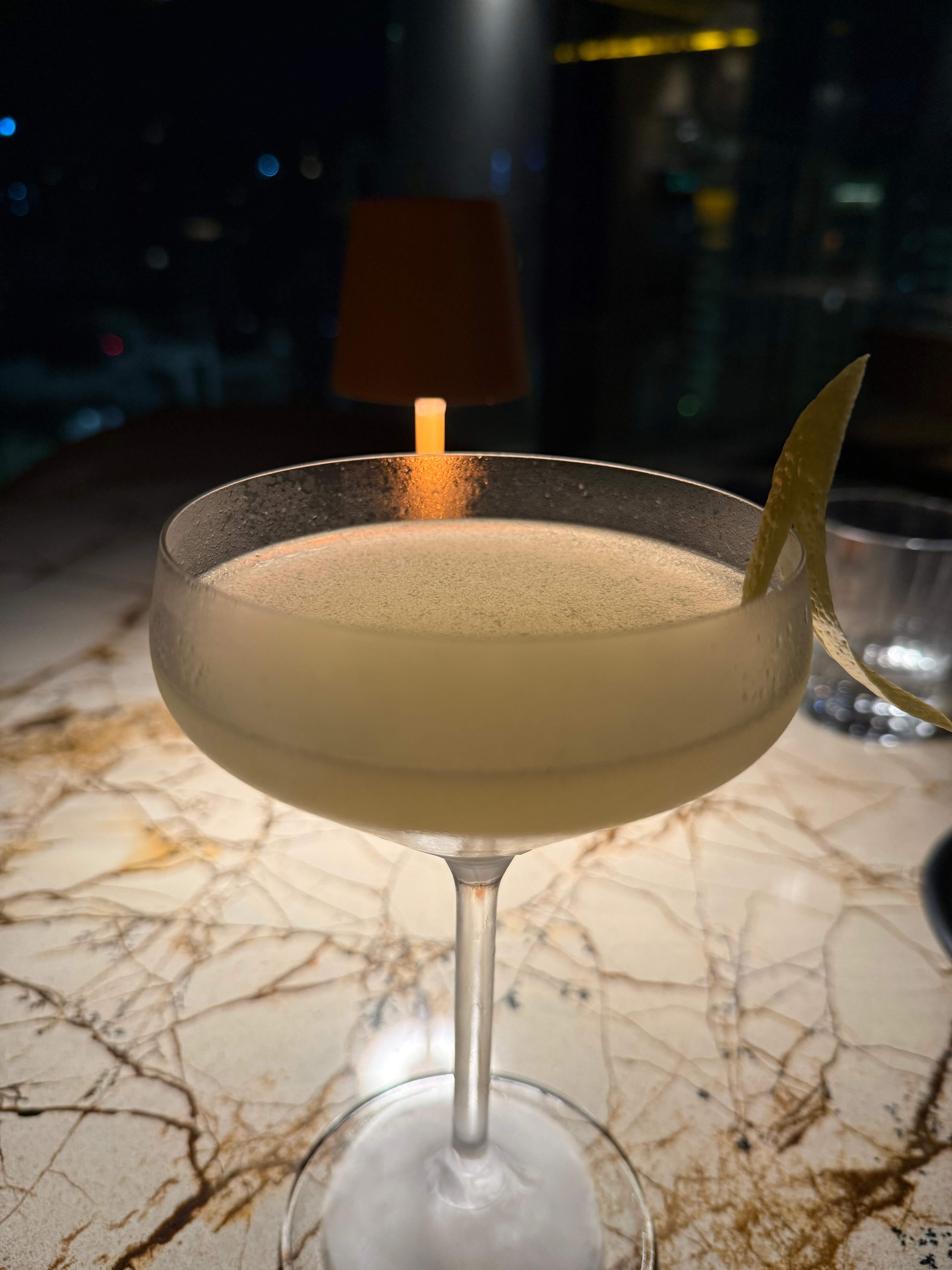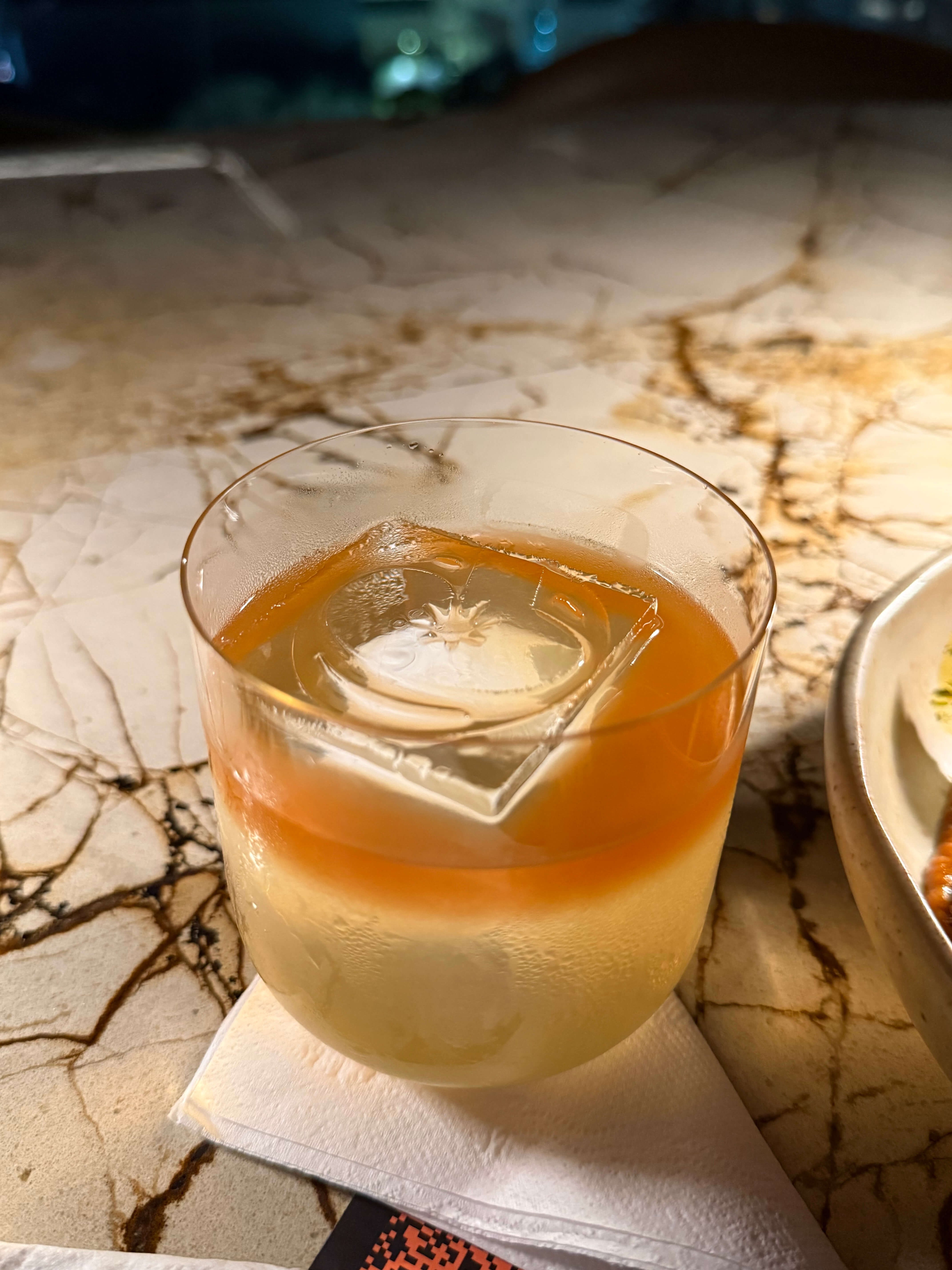 Vale destacar que os garçons podem sugerir os pedidos se você estiver na dúvida. Para nós foi uma ótima opção, pois nos possibilitou experimentar os destaques do cardápio. O drinque que meu acompanhante pediu na sequência foi o Lagoinha, feito com cachaça Princesa do Vale Amburana, fermentado de caju e aquafaba. Experimentei e achei que tanto o sabor quanto o cheiro são marcantes.